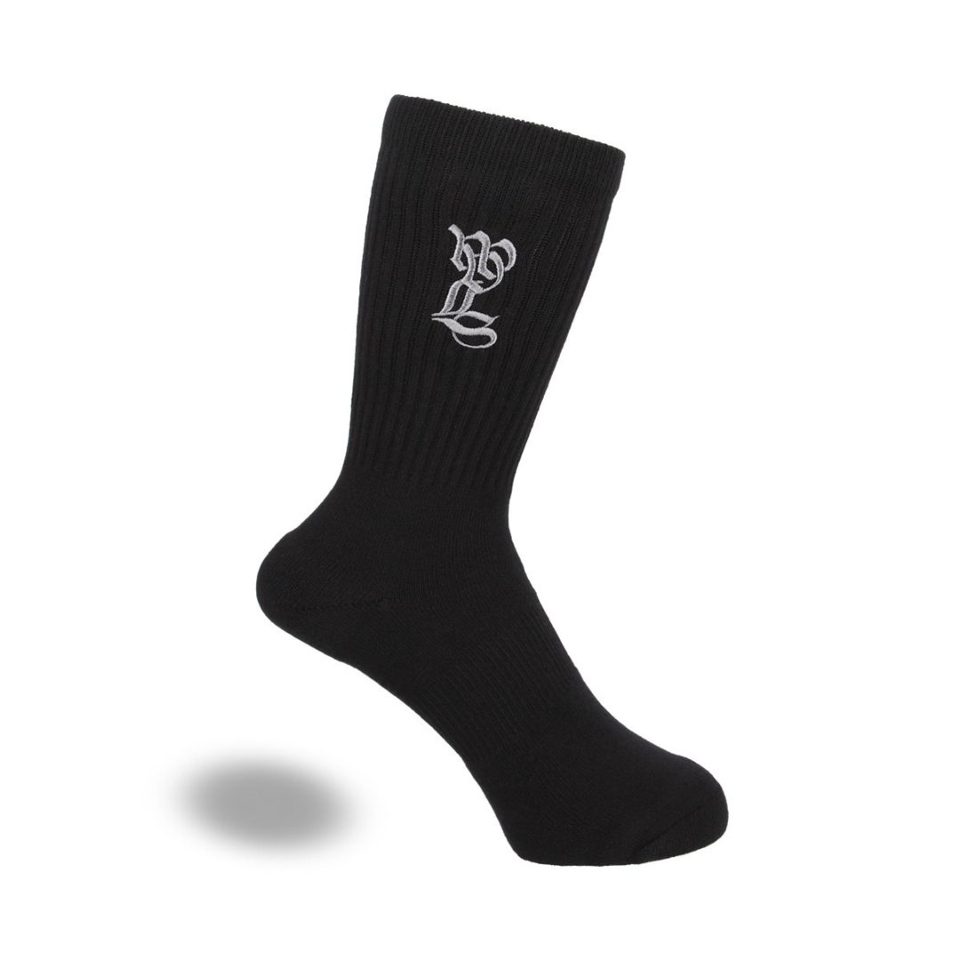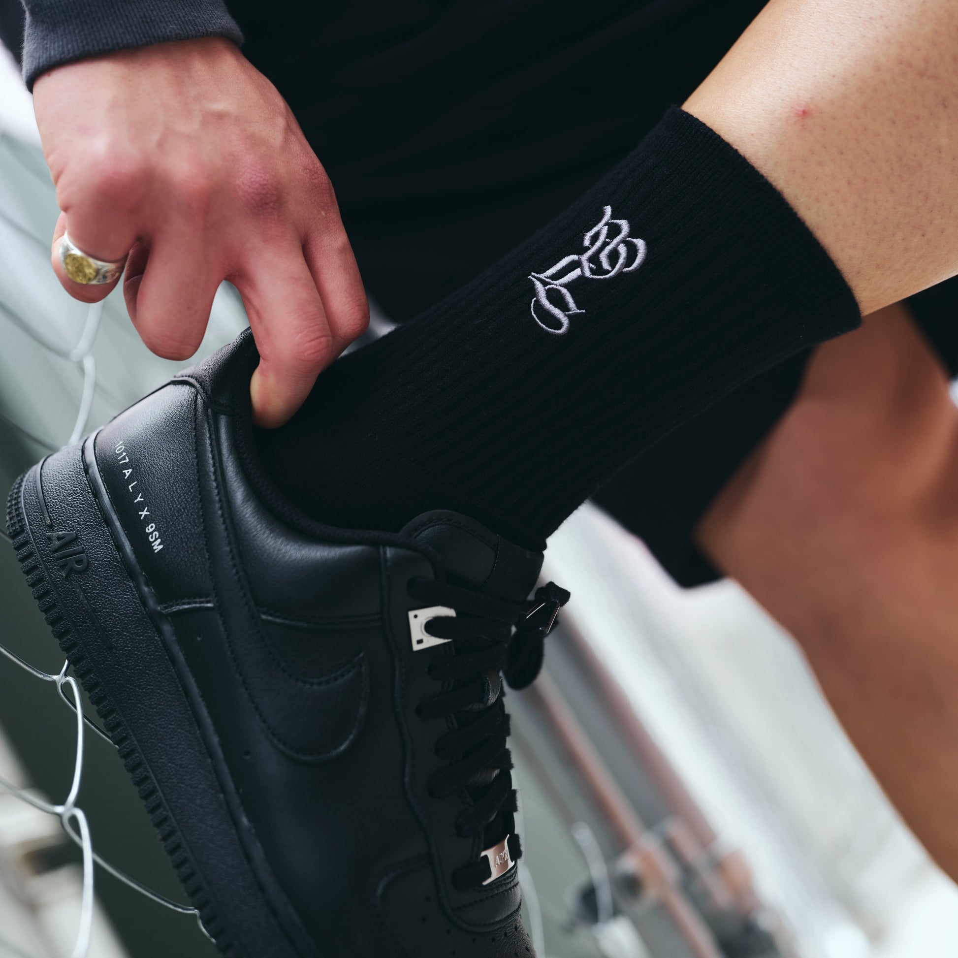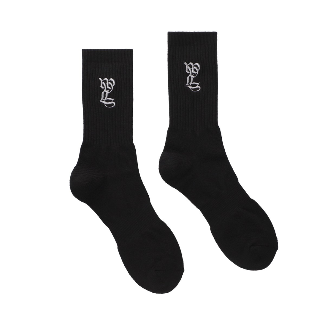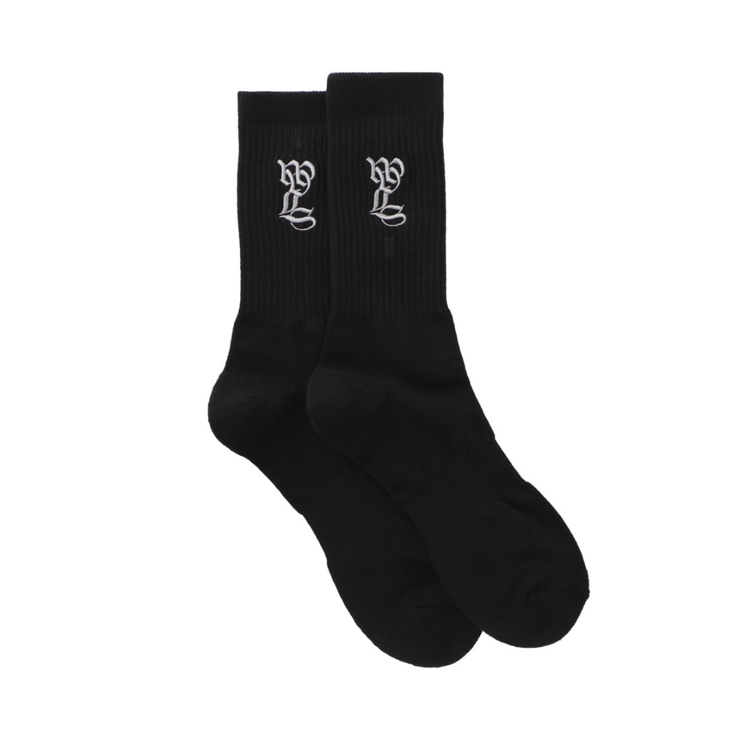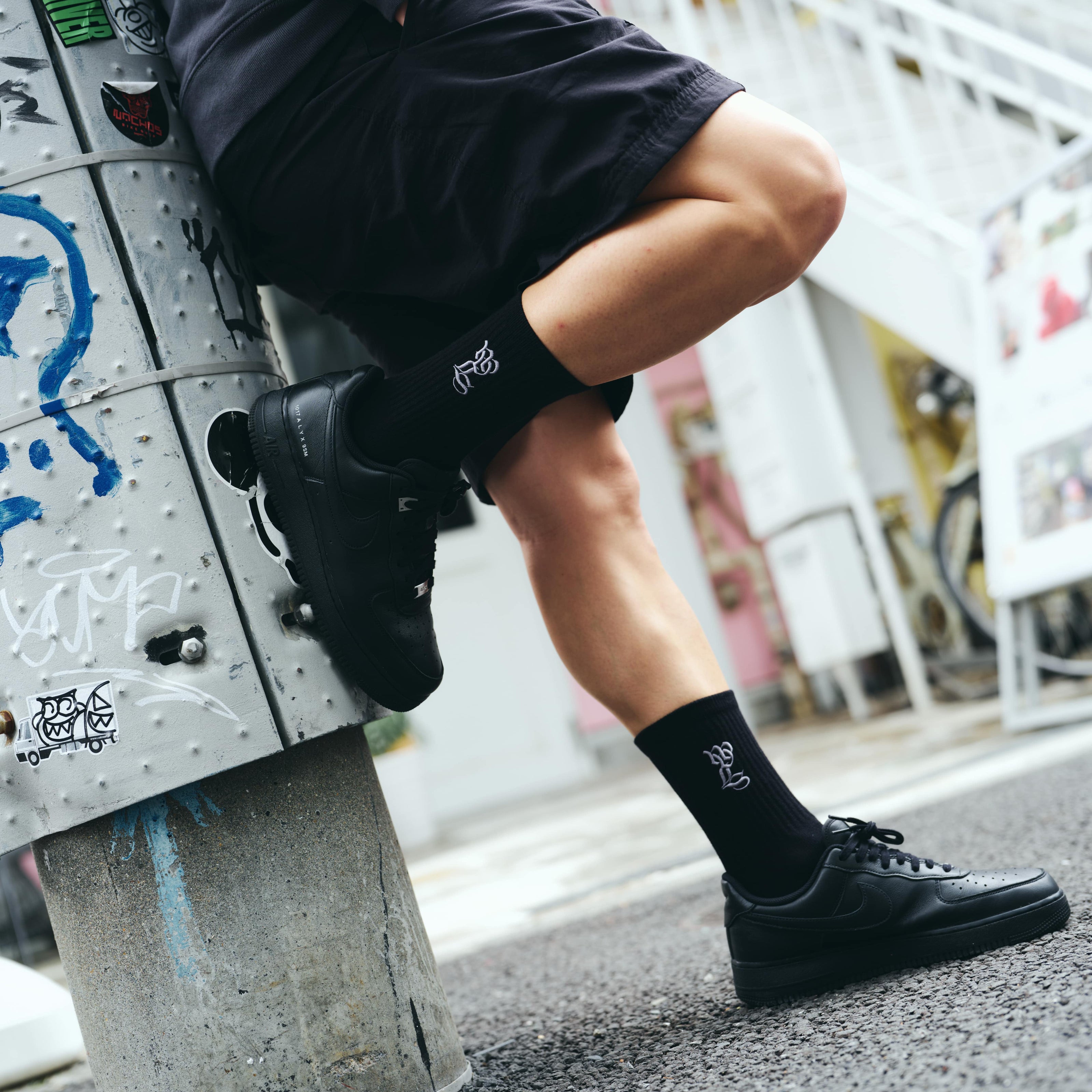 ソックスでは見ない大きめな刺繍ロゴが特徴なので、TOP写真にもあるような黒のエアフォース1などと合わせていただくのが無難にカッコ良いと思います。